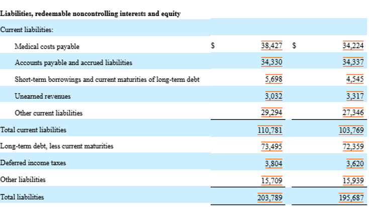 | 의료 지급 준비금 ( Medical costs payable) | 38,427 | 34,224 | 12% |